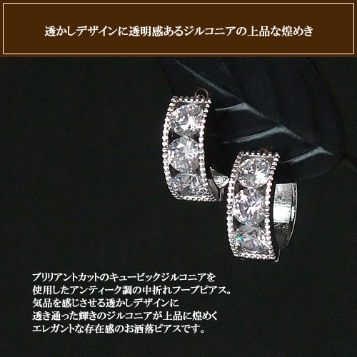 商品詳細 商品説明 ラウンドブリリアントカットのキュービックジルコニアを使用した中折れモデルです。