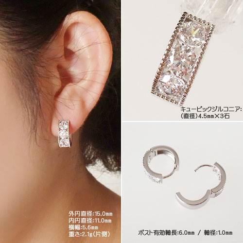 詳しくは⇒コチラから その他 商品のお取り扱いについて 関連アイテム ・スリムな小サイズは⇒ コチラから ・スリムな大サイズは⇒ コチラから ・太めの中サイズは⇒ コチラから商品詳細 本体サイズ 外円直径:15.0mm(内円直径:11.0mm) 横幅:5.6mm / 重さ:2.1g(片側) ポストサイズ 有効軸長:6.0mm×軸径:1.0mm(太め) 素材 真鍮(ロジウム鍍金) キュービックジルコニア(人工石) 配送方法 ・宅配便(クロネコ宅急便):○ ・追跡可能メール便(ネコポス便):○ その他 商品のお取り扱いについて タイプ[ A ] タイプ[ B ] タイプ[ D ] タイプ[ E ]