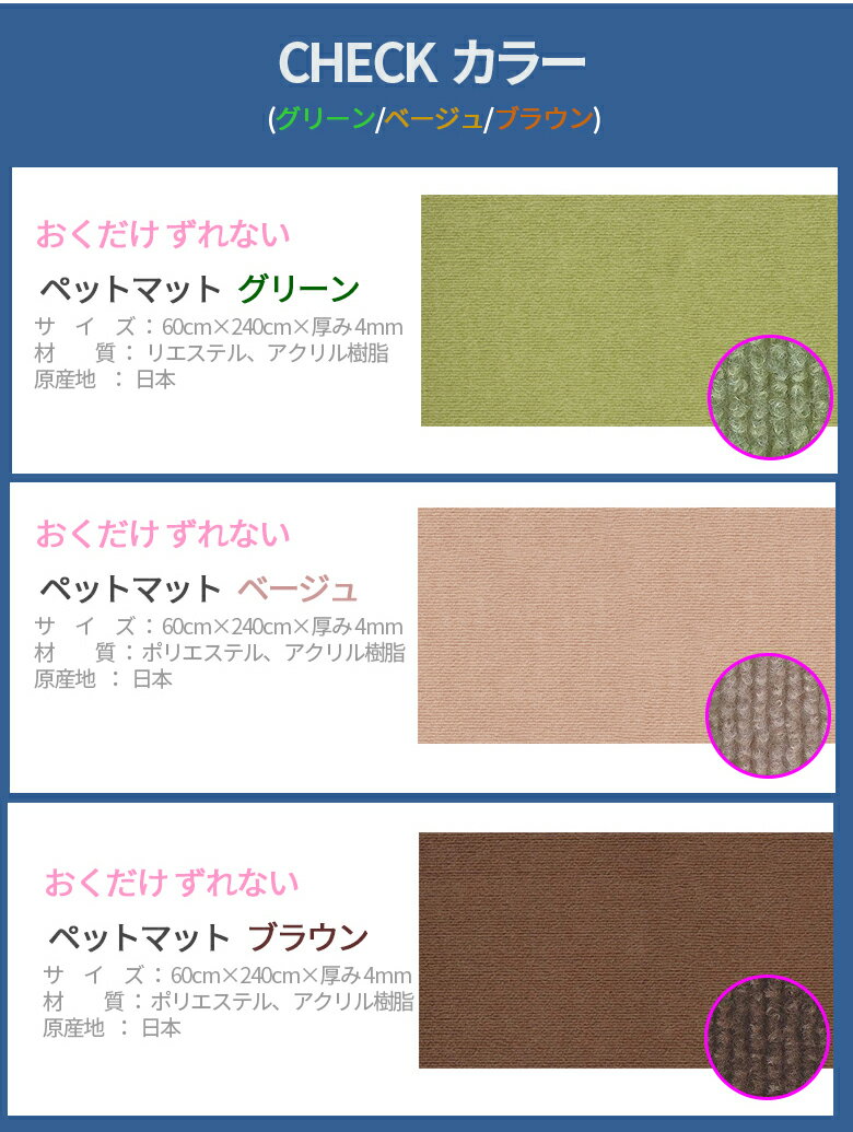本体サイズ 60×240cm (厚み約4mm) 素材 表面:ポリエステル100%、裏面:アクリル樹脂(カテキン入り) 原産国 日本 【返品条件等販売に関する重要事項】 ■ご注文キャンセルに関して ご注文確定後のキャンセル、商品発送後の返品・交換は一切お受けしておりません。